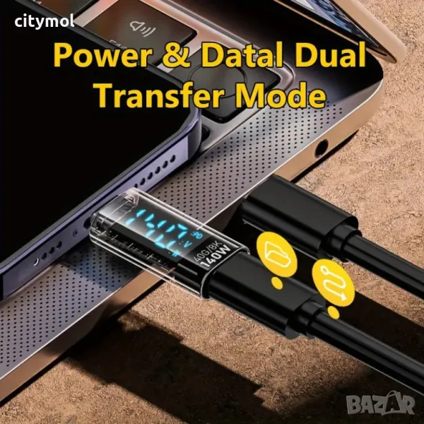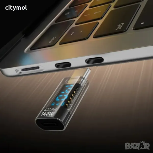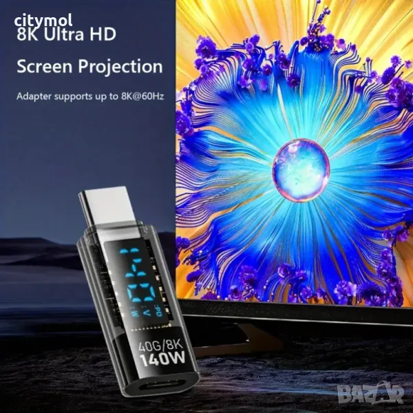 USB C към USB C адаптер с LED дисплей, 8К, 40 Gbps 140 W, Power Meter, USB4 Thunderbolt