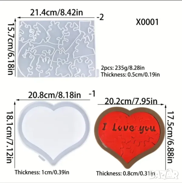 Молд комплект сърце пъзел голямо НАМАЛЕН → Обява 48507645