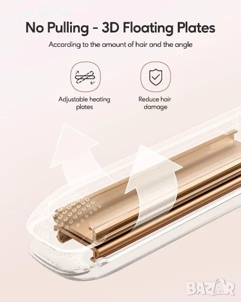 Гъвкавите 3D плаващи плочи на тази преса за коса се плъзгат безпрепятствено през косата ви, за да ускорят, минимизират увреждането на косата и да създадат безупречен стил като в салон. Размер: 31*3,1 CM