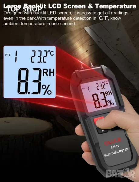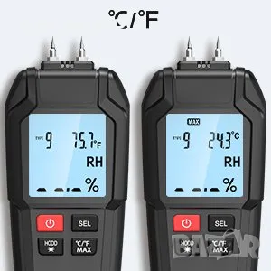 Широк диапазон на измерване: Този влагомер има много широк диапазон на измерване, вариращ от 6% до 100% за дърво и сгради. Нещо повече, този влагомер може да показва и температурата на околната среда (0-80°C). Това, което имате, не е просто влагомер, а термометър за околната среда.