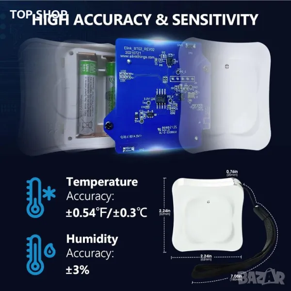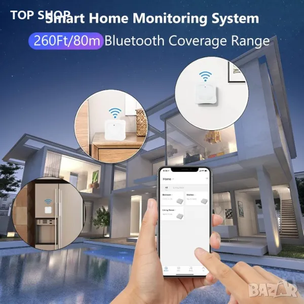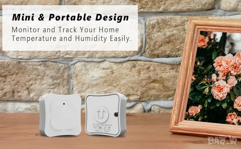 Този безжичен температурен монитор е оборудван с Bluetooth 5.0 и най-дългото разстояние за връзка може да бъде до 80 метра (без препятствия).
