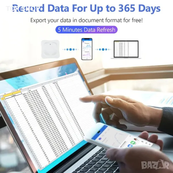 Този bluetooth термометър хигрометър ви позволява да наблюдавате вашите данни за температурата и влажността за последната 1 година. Можете също да експортирате данните като CSV файл за проверка в свободното си време.