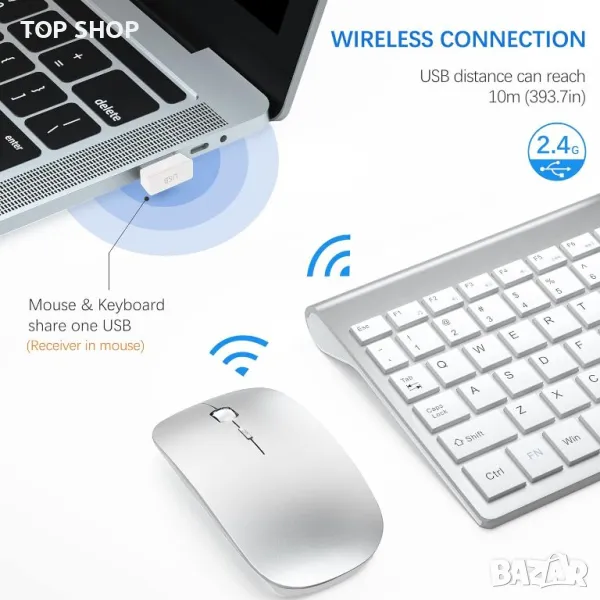 Безжична клавиатура и мишка TopMate Ultra Slim Combo, 2.4G