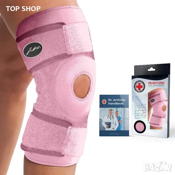 Универсална колянна ортеза със стабилизация за капачката Dr. ArthritisРазработена от лекар първокласна скоба за опора на коляното с медна облицовка и наръчник, написан от лекар — гарантирано облекчение и поддръжка при наранявания на коляното и други колена