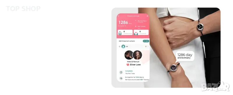 Насладете се на повече сладки функции с любимия човек чрез приложението Totwoo. Водете личен чат и изпращайте любовни писма без усилия. Вашата любовна гривна също ви напомня за важни дати и обаждания с персонализирани светлини и вибрации.