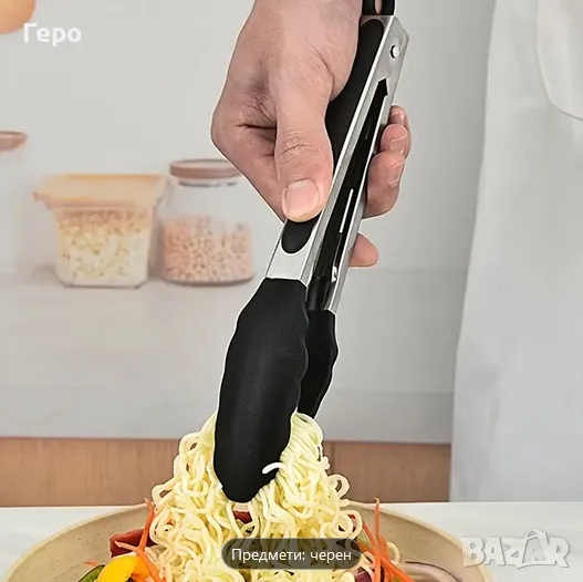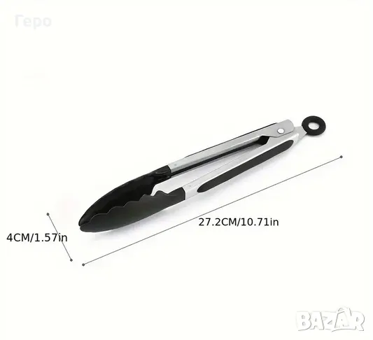 Кухненски щипки - 27 см., нови от неръждаема стомана със силиконови върхове, устойчиви на висока температура. Лесни за хващане, против замърсяване. Перфектни за барбекюта, мултикукър, пикник, ресторанти и домашни кухни, щипка за готвене на бюфет. Лесни за почистване, силно захващане, черни. Изпращам с преглед, лично предаване.