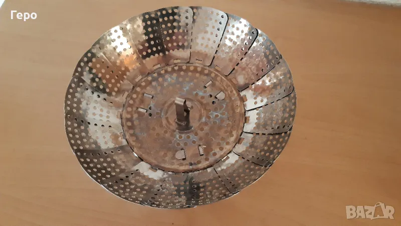 Универсална кошница за готвене на пара ф 23см. в тенджера, нова, неръждаема стомана, приспособява се за различни по размер тенджери с регулируем размер от 14 до 23 см. Сгъваема за лесно съхранение. Приготвяне на зеленчуци на пара, спестява време и запазва вкуса и витамините в тях. Кухненски аксесоар, подходящ за миене в съдомиялна машина, лесно почистване и удобство в ежедневието. Изпращам с преглед, лично предаване.