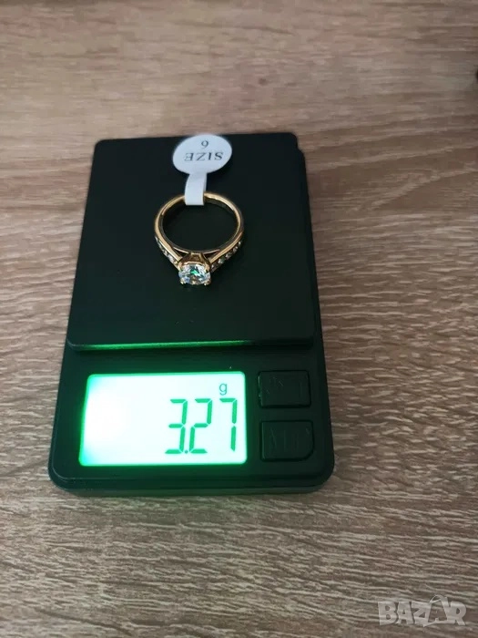 1. Нов пръстен с трислойно златно покритие и естествени диаманти Цирконий. Размер 6, диаметър 16.5мм. Тегло 3,27гр.