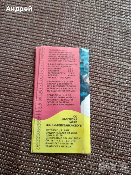 опаковка от шоколад Феро от соца!