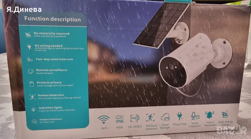 Продавам безжични wi-fi 5MP камери Jnice чисто нови камери към който има и суларен панел за зареждане. Камерата е водоустойчива, цветно виждане има място за SD CARD. Внос от Германия.