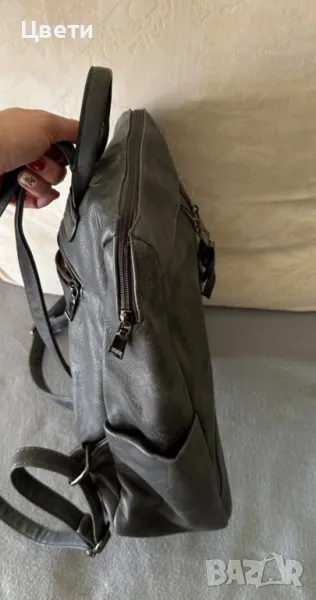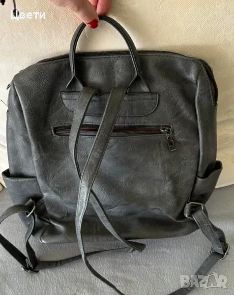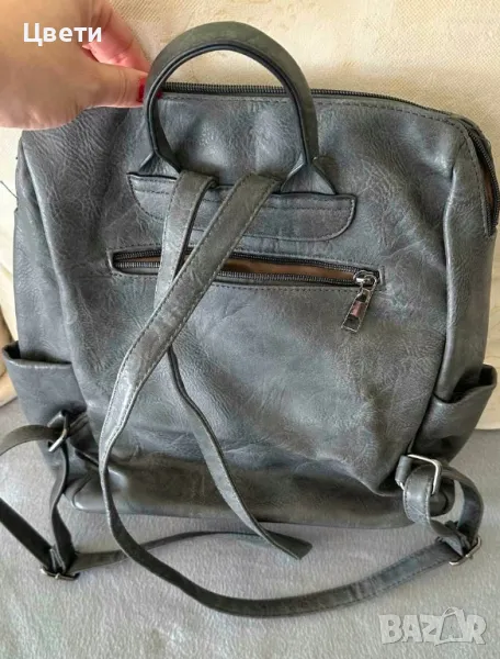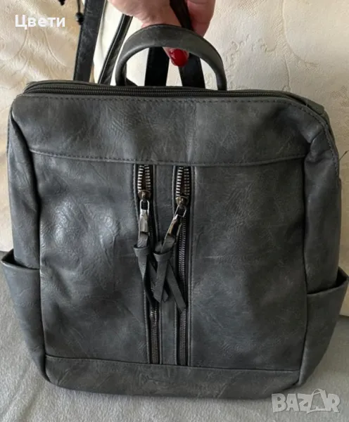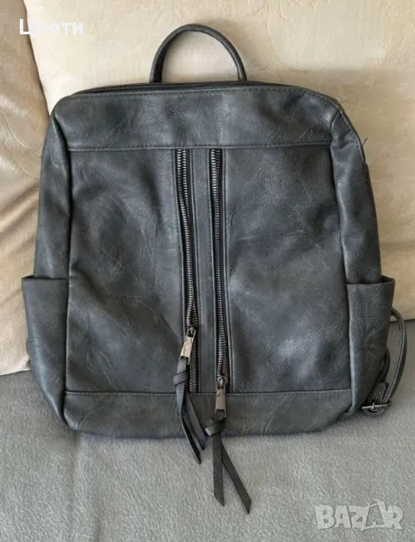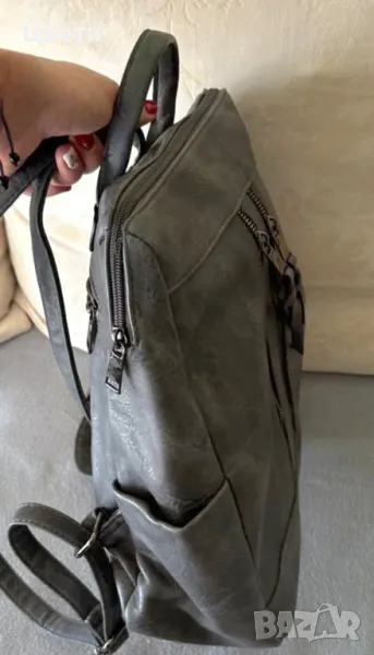 Кожена дамска раница.Цвета е тъмно сив.Нова.
