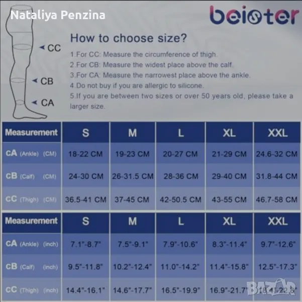 Медицински компресионни чорапи Beister с високи бедра и силиконова лента. За жени и мъже