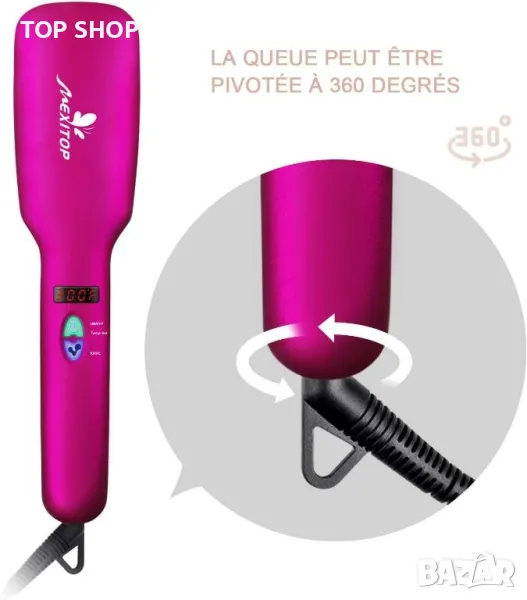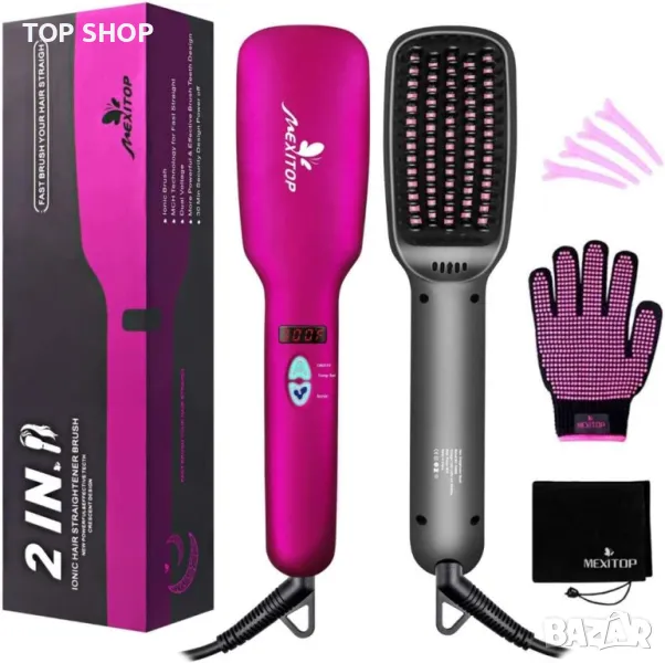 Четка за изправяне на коса Mexitop, четка за изправяне с функция против изгаряне, автоматично изключване, първокласна йонна четка 2 в 1 за коса и брада, четка за изправяне за домашна употреба, пътуване и салон