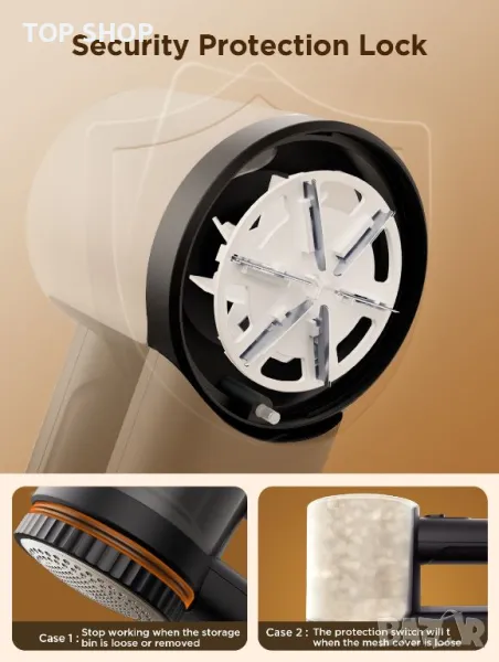 Защитно заключване: С вградени предпазни механизми, ако мрежестото покритие е разхлабено или контейнерът за съхранение е разхлабен или пълен с мъх, самобръсначката автоматично ще се изключи, за да ви предпази от случайна повреда или нараняване.