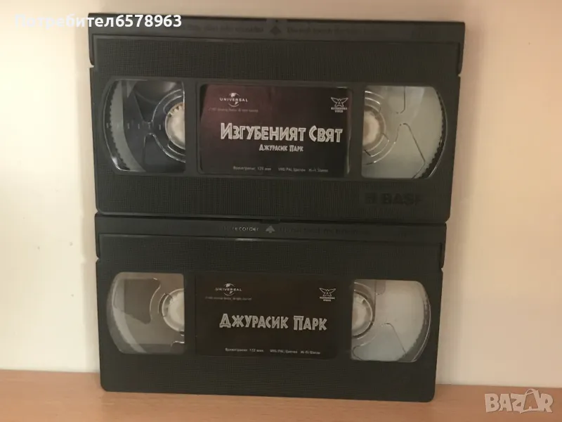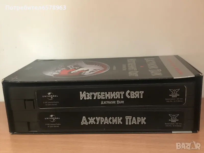 Джурасик Парк '' '' Джурасик Парк 1992 г. '' и '' Джурасик Парк '' Изгубеният Свят '' 1997 г. '' Касетите са с по два етикета и са отлично запазени .На последните две снимки съм снимал лентите да се видят , че не са намачкани нито скъсани . Работят отлично . Филмите са с български субтитри . Времетраене : Джурасик Парк 1992 г. - 122 минути , Джурасик Парк '' Изгубеният Свят ''- 129 минути . 7 снимки