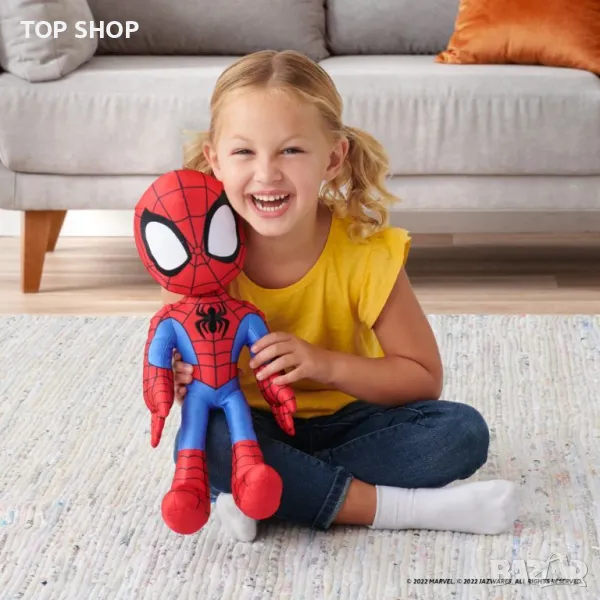 Време е за Спайди! Включете се в най-новото приключение на Spidey с 35- сатиметровия плюшен My Friend Spidey със звуци. Натиснете паяка върху гърдите на Webbed-Wonder, за да активирате една от 16-те автентични фрази, включително „Да тренираме нашия Спайди замах“, „Браво, екип Спайди“ и още! Тези представени крилати фрази са направо от невероятното шоу, Спайди на Marvel и неговите невероятни приятели, новият анимационен сериал на Marvel. My Friend Spidey е плюшеният Спайдърмен, който всяко дете ще иска за подарък и да добави към своята колекция от играчки! Обединете се с нашия супер герой с този луксозен плюш за невероятно забавление. Web-out!