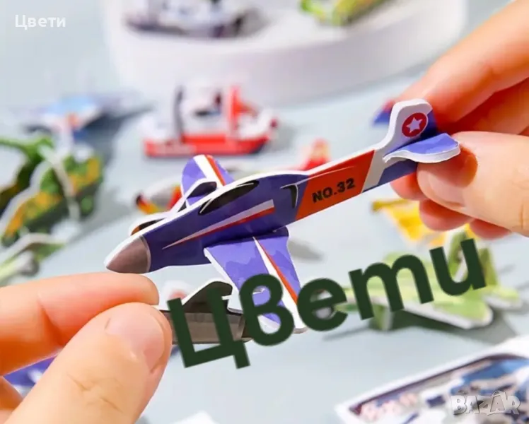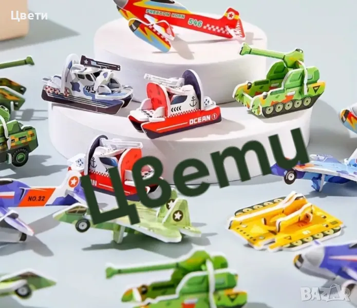 Хартиен пъзел с динозаври и насекоми, превозни средства.