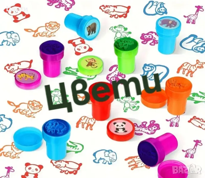 Цветни печати с животни.