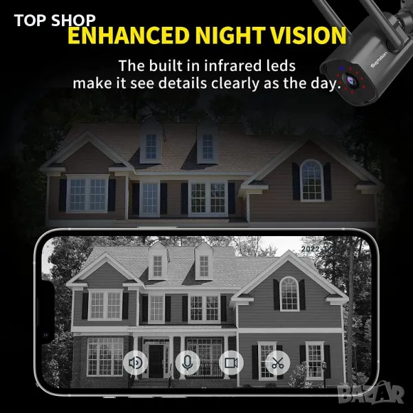 IP Камера на Septekon,1080p, двойна антена 2.4G WiFi камера с нощно виждане,двупосочно аудио