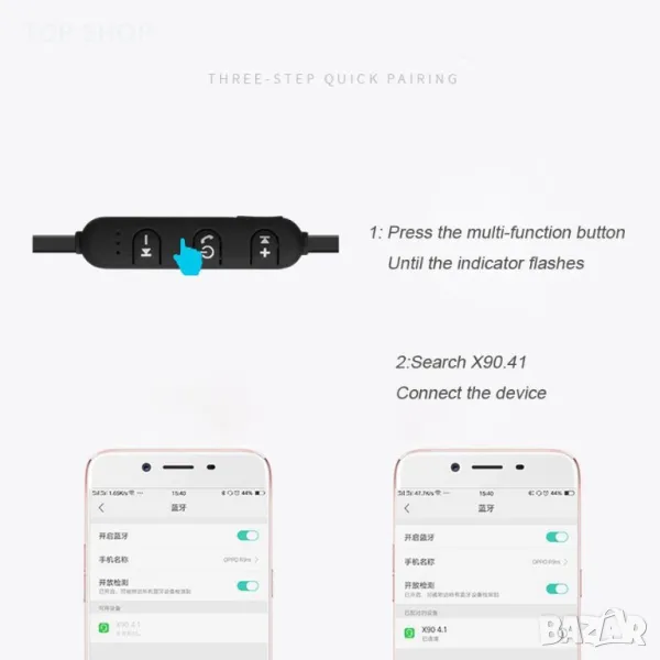 Bluetooth Plug and Play- за всички модели смарт терлефони, таблети, компютри и др. устройства. Wireless Bluetooth Sport Headphone, In-Ear HD HiFi Stereo Earphone with Mic, Secure Fit, Noise Cancelling, Sweatproof, Lightweight