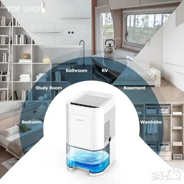 Компактен изсушител за сутерени и малки пространства - С прозрачен резервоар от 40 унции можете да виждате обема на събиране на вода на изсушителя по всяко време, Дизайнът на жлеба в долната част на резервоара за вода ви позволява лесно да го извадите, напълните с вода и почистете го! Само с едно натискане можете да започнете обезвлажняване и да създадете суха и комфортна среда за вас и вашето семейство