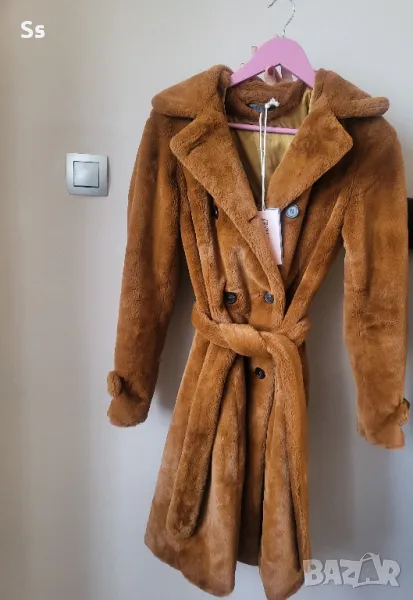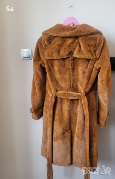 Палтото е меко на допир. В, красив кафяв цвят. Не е еластично. Отговоря на размер s/m, т. е 36/38 размер.