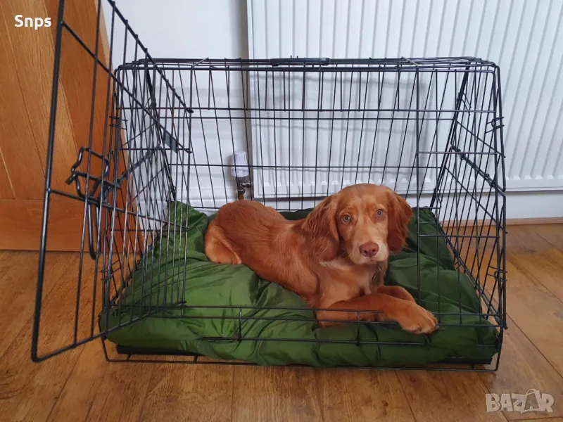 Сгъваема клетка за кучета с метална табла и постелка за кучета 60х40х51