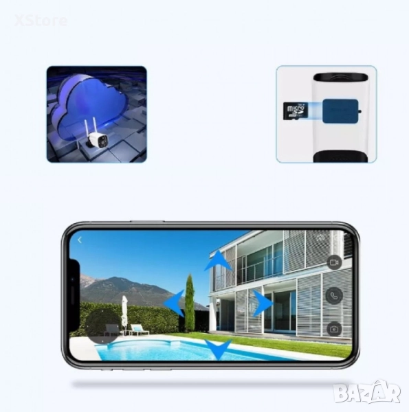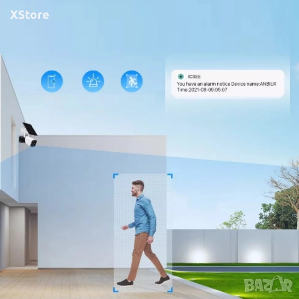 Камера с отделен соларен панел и датчик, 4 диода, 6MP, iCsee приложение