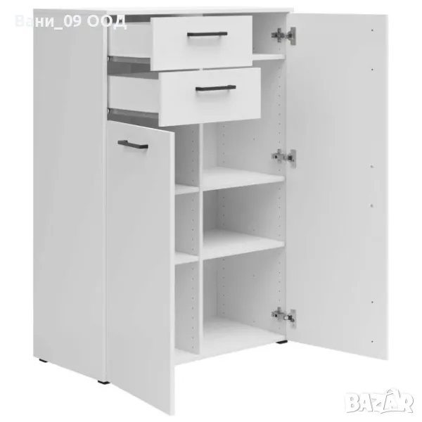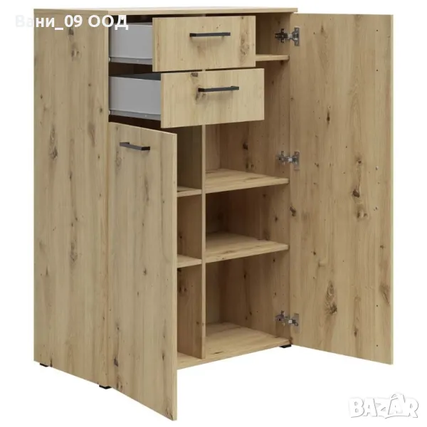 Комод с 2 вратички, зад които има няколко рафта, и 2 чекмеджета, с размери: 80/40/110 см