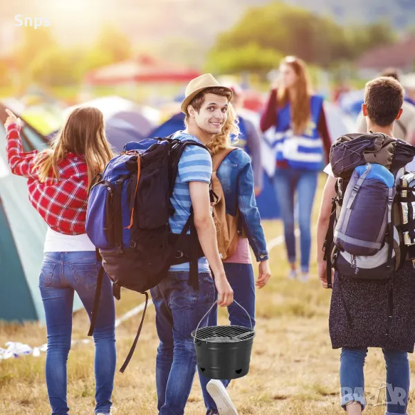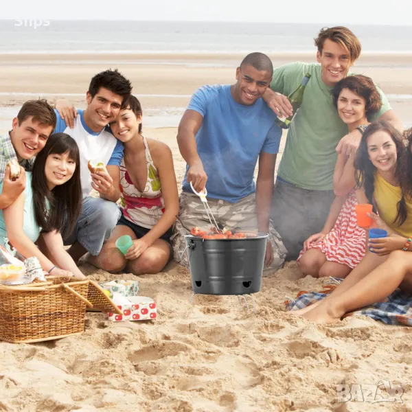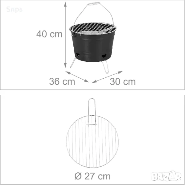 Преносимо барбекю - за балкон и къмпинг - дизайн на кофа - дръжка - Ø 27 см - черно
