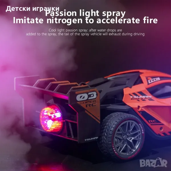 Осветяването на парата с ярки лъчи създава впечатляващ ефект на горяща гума и ще изненада много детето!