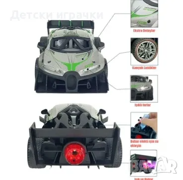 Метална кола с дистанционно и пушек, Bugatti, LED светлини