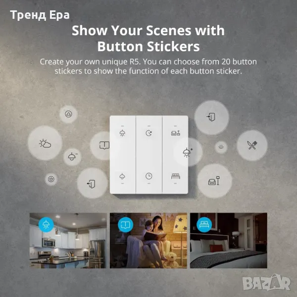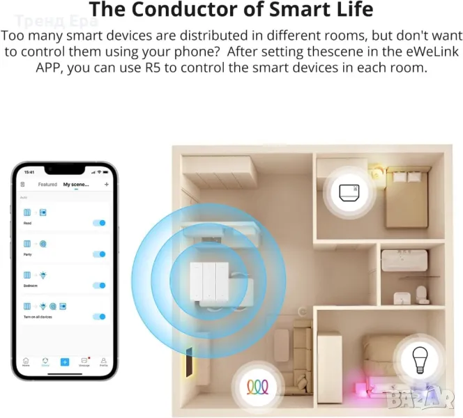 Имате твърде много смарт устройства и те са разпределени в различни стаи, но не искате да ги управлявате през телефона си? В момента имате нужда от дистанционно управление за сцена R5, което може да се добави към eWeLink-Remote, за да контролирате всички устройства в eWeLink APP, като използвате три начина на задействане в сцената.