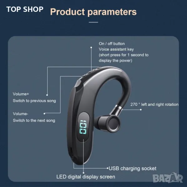 Ергономичен дизайн, меки гумени куки за уши, добра хлабина, против падане, продължителна употреба не наранява ушите.
