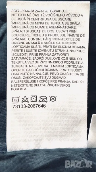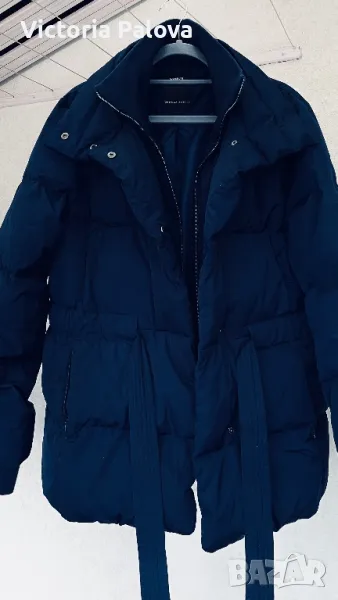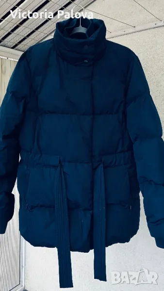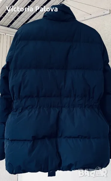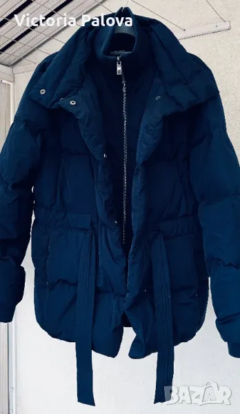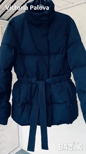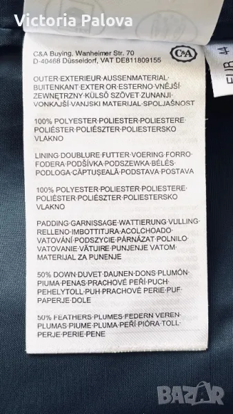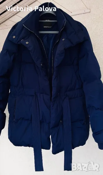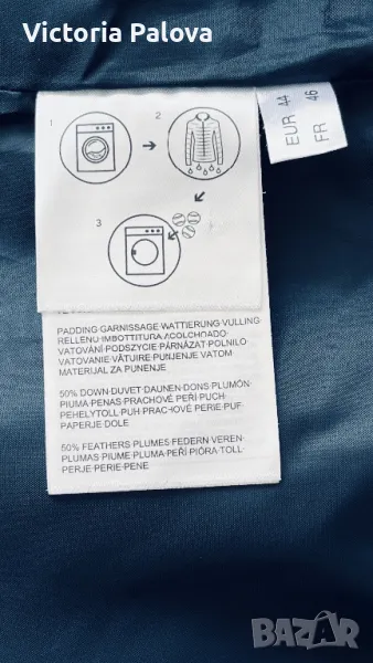 Якето е прекрасно - съвременна кройка, с вътрешен колан, с който може да се регулира линия на талията по желание, в долния край е с широк вътрешен ластик, който не се вижда отвън, яката е висока 12см, ръкавите са с трикотажен вътрешен маншет, джобовете са с цип, закопчаването е с цип и копчета ( ципът е гладък и се движи много лесно). Рамо - 48см , ГО - 60-61см, дължина - 76см, ръкав - 65см. Състав на пълнежа - 50% гъши пух, 50% перо.