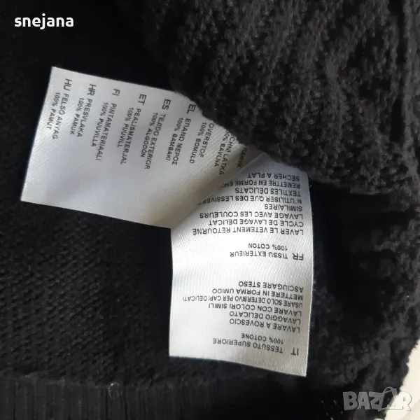 Оригинален пуловер ,много добро състояние, без забележки, наситено черен цвят, на снимките изглежда по светъл.от мишница до мишница 52см, дължина 67см, ръкав от под мишница до края 47см. Символична цена.