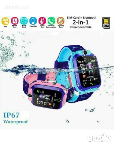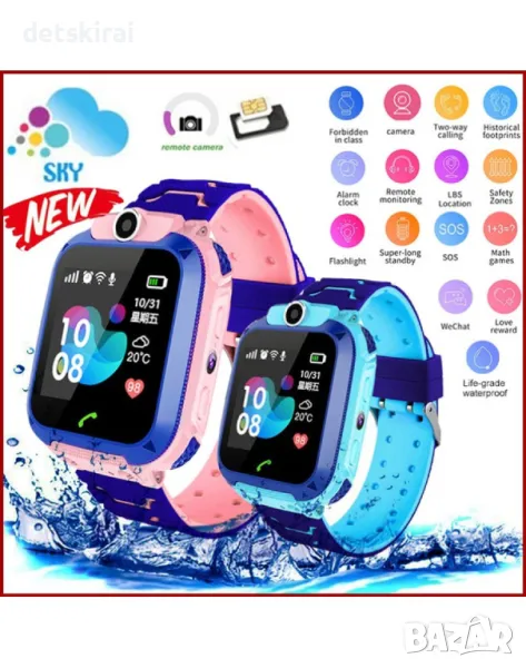 1.44 инчов дисплей, GPS и функция на телефона, Wi-Fi, местоположение на камерата, наблюдение на шпиони, водоустойчив, прах и удари, сензорен екран, SOS бутон, периметър за безопасност, GPS история на местоположението, безшумен режим, син