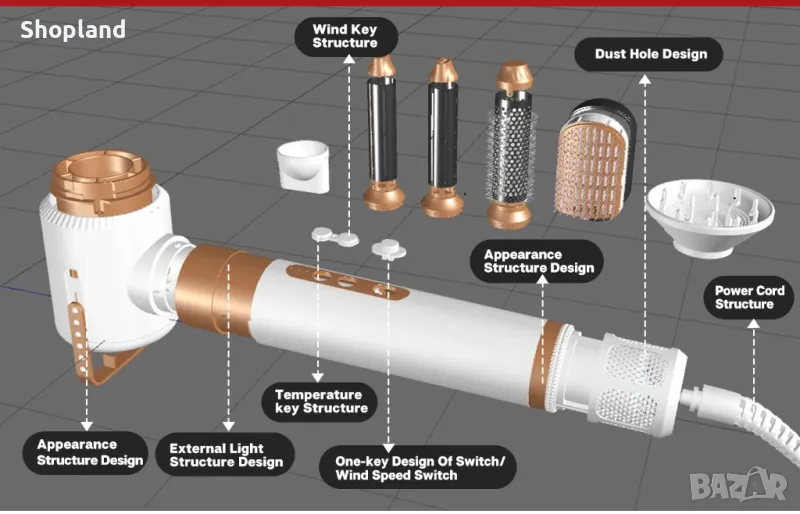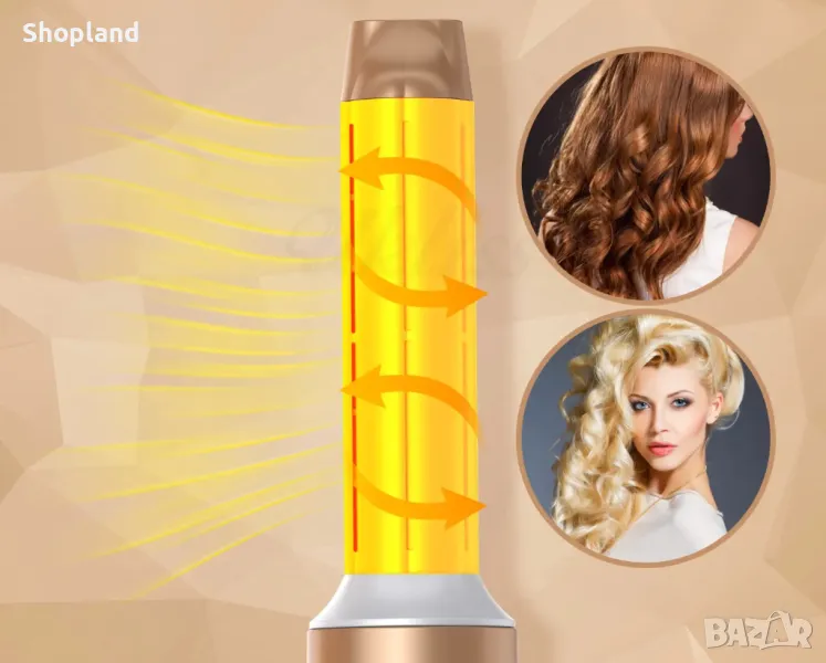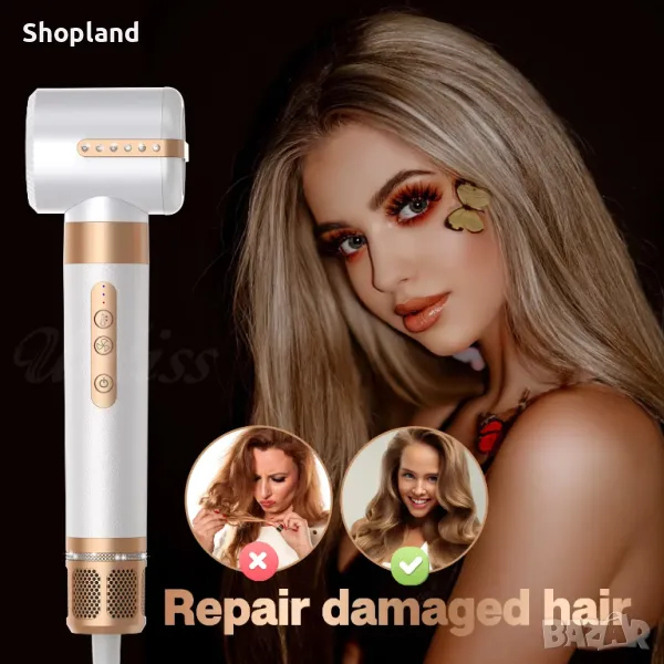 Този 7-в-1 висококачествен сешоар е иновативен уред, който комбинира множество функции, за да ви осигури професионален стайлинг в домашни условия. Създаден с мисъл за удобството и нуждите на модерната жена, този сешоар предлага уникална комбинация от приставки и функции, които ви дават свобода и креативност при оформянето на косата. Сешоарът е перфектен за всякакъв тип коса и ви позволява да постигнете гладка, обемна и изящна прическа само за минути.