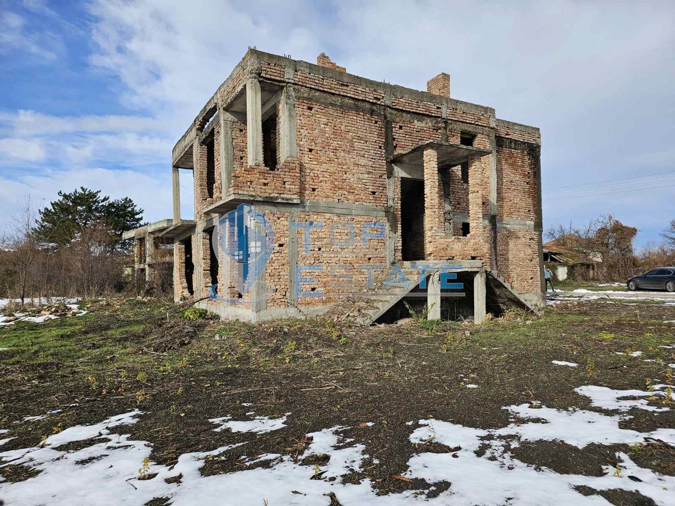 Топ Естейт Недвижими имоти Ви предлага къща в строеж в село Царски Извор, обаст Велико Търново. Къщата е с разгъната застроена площ от 230 кв.м и се продава под формата на груб строеж, а разположението на стаите е предвидено по следния начин: първи етаж - голяма кухня с трапезария и всекидневна, спалня, баня с тоалетна; втори етаж - четири спални, всяка от които с тераса и хубава панорамна гледка, баня с тоалетна; третият етаж е предвиден за голям таван, като може да се обособи и като таванска жилищна част. Дворното място е с площ 1500 кв.м и разполага с трифазен ток, а водопровода преминава в непосредствена близост до него. Имотът се продава с изготвени проекти и разрешение за строеж. Номер на оферта 1927. We speak English