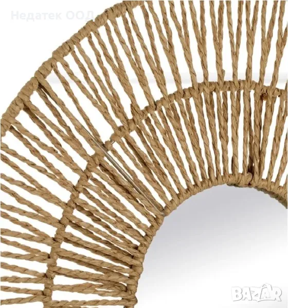 Декоративно огледало за стена, висящо кръгло с огледало Ø20см и рамка от метална рамка и плетено хартиено въже в естествен цвят.