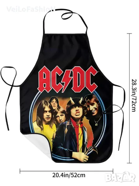 Нова забавна готварска престилка с музикална тематика на музикалната група AC/DC, устойчивa на вода и масло. Престилката ще ви помогне да