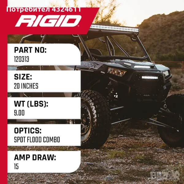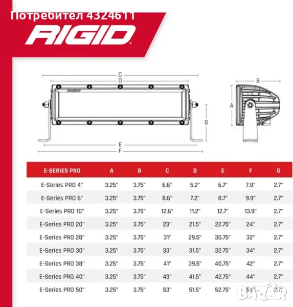 Дълъг живот на осветлението – LED светлините на RIGID осигуряват до 50,000 часа работа, което означава, че ще ви служат надеждно дори при интензивна употреба.