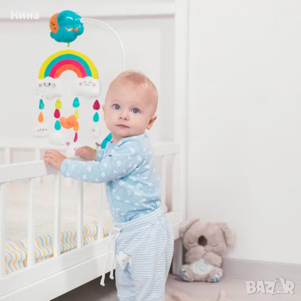 🌈 12 приспивни мелодии осигуряват истински музикален и сензорен спектакъл за бебето и нежно придружават съня му.