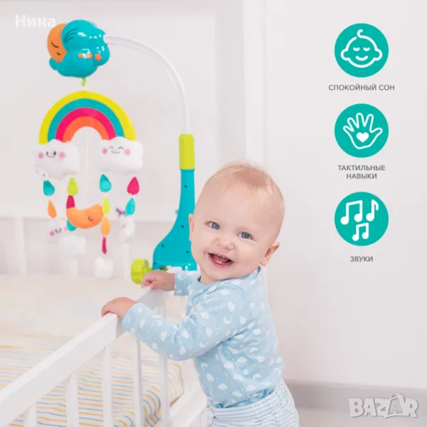 🌈 12 приспивни мелодии осигуряват истински музикален и сензорен спектакъл за бебето и нежно придружават съня му.