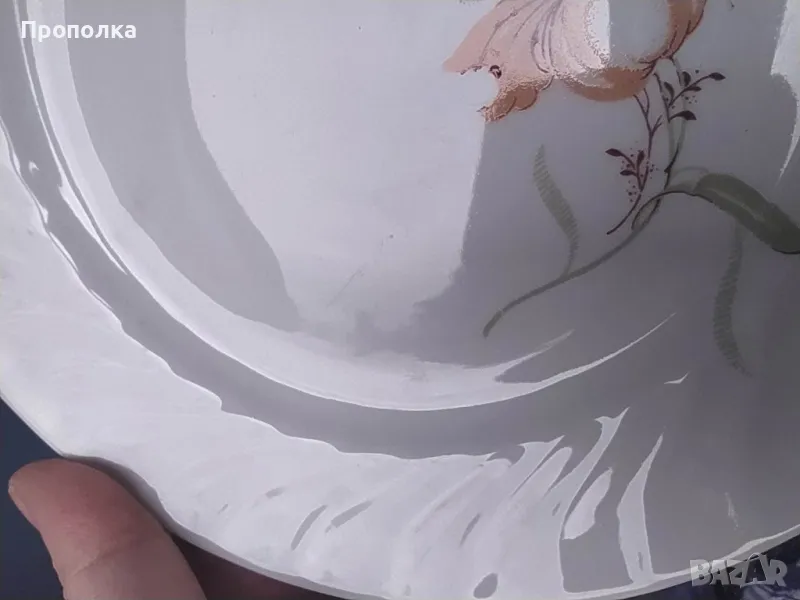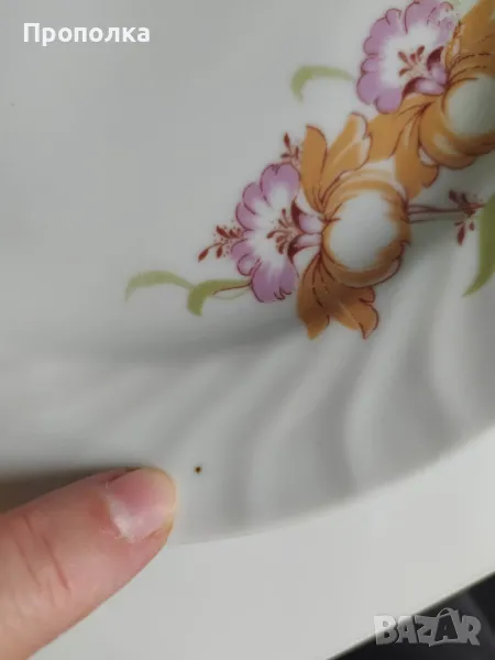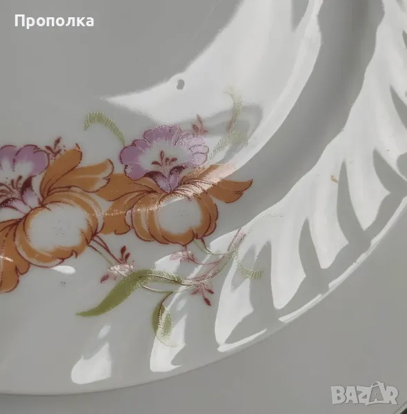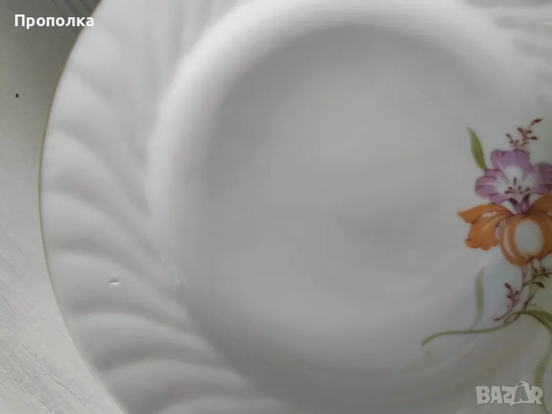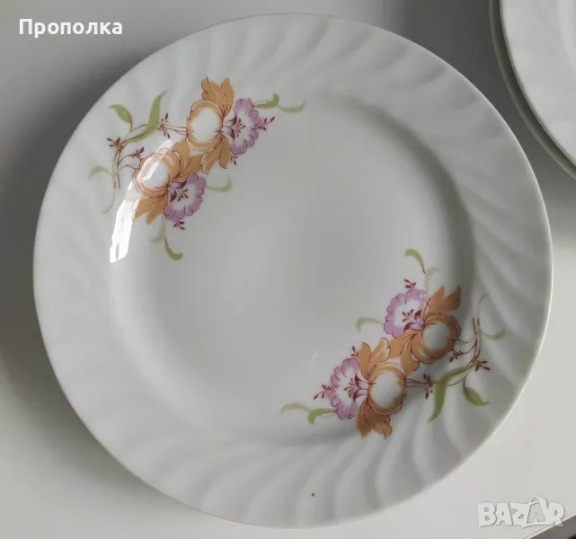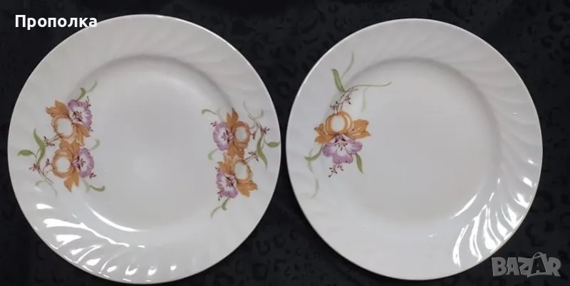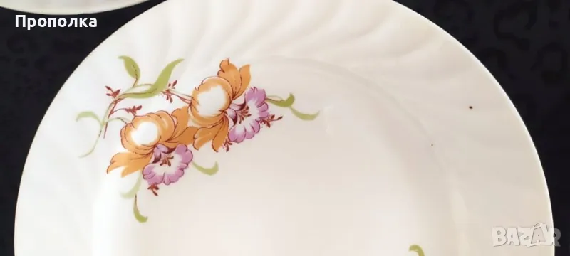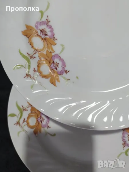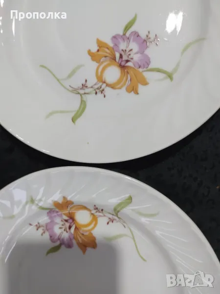 Отлично състояние. Състои се от чинии 4бр. с мотив двойни цветя и 2бр.