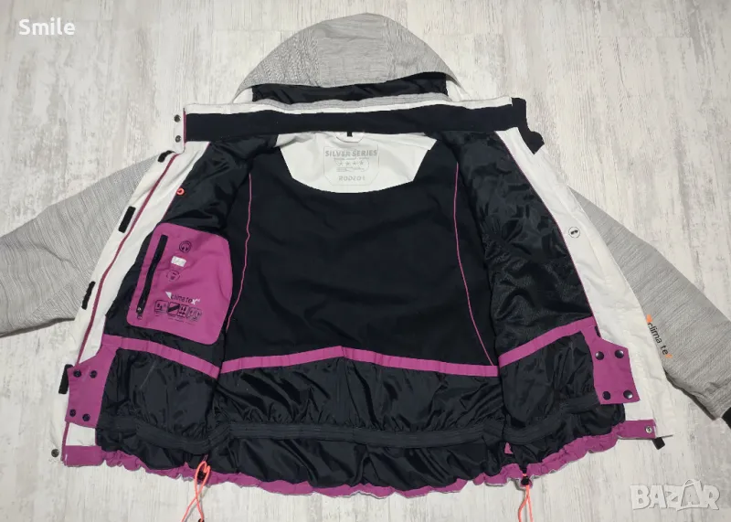 RODEO C&A Free ride vipers дамско зимно яке, Silver series, високо качество на материалите и изработката. В отлично състояние, като ново, никакви забележки. Якето е със система Clima tex ® - функционална, издръжлива материя, ветро - и водоустойчива, извежда влагата навън. Джобове с подлепени шевове, всички ципове работят. Сваляща се качулка с цип + копчета от двете страни. Ръкавите са с велкро за регулиране на щирината при китката. Отдолу има връзка за регулине със стопери. Размер XXL. Размери измерени от мен: ширина от подмишниците - 73 см., дължина - 68 см., дължина ръкав от подмишницата - 47 см., дължина на ръкав + рамо - 76 см.. Изпращам със "Спиди" или "Еконт