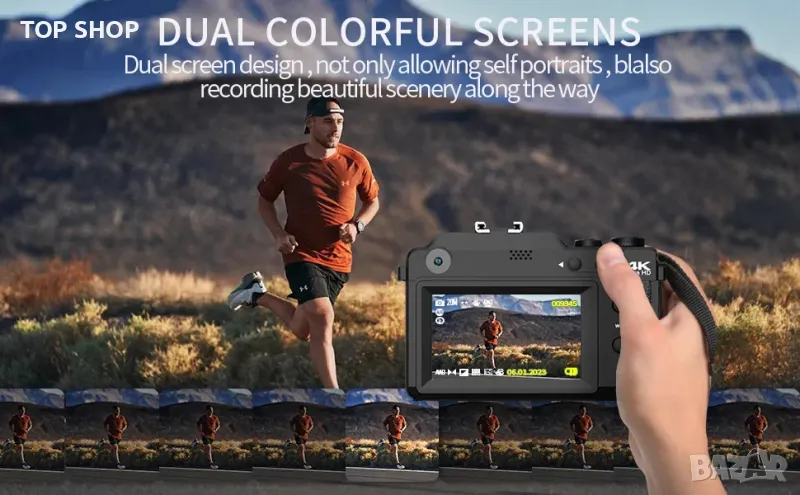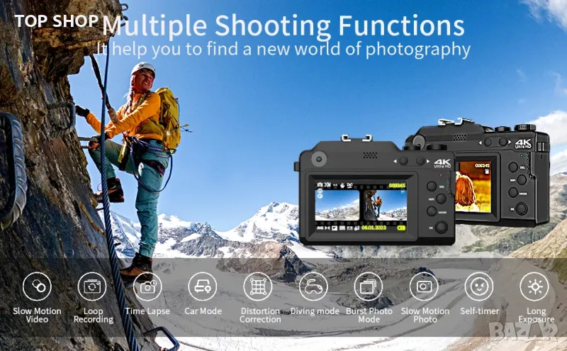 Оригинален широкоъгълен обектив TEKXDD: С вградения широкоъгълен обектив този фотоапарат за фотография може да заснеме още 45 изображения с всяка снимка. Няма нужда да носите тежки лещи, което значително намалява тежестта ви при пътуване. С тази 4k камера можете да правите зашеметяващи снимки на хора, пейзажи, селфита и други