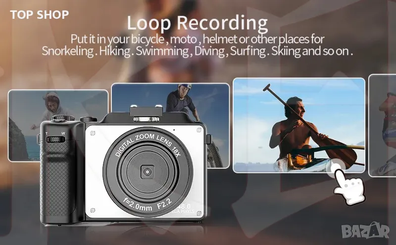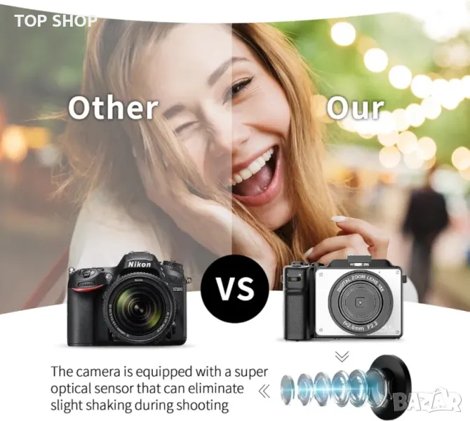 Камера за Vlogging с автоматичен фокус и стабилизиране на трептенето: Нашата цифрова камера предоставя видео с висок битрейт с 4K резолюция и ясно изображение от 48MP, без да пропуска нито един детайл. 4k камерата поддържа и 18x цифрово увеличение, само с едно щракване за заснемане на истински снимки с автоматичен фокус и анти-трепване. Безплатната каишка за китка, която може да увие удобно пръста ви, предотвратява падането на видеокамерата.