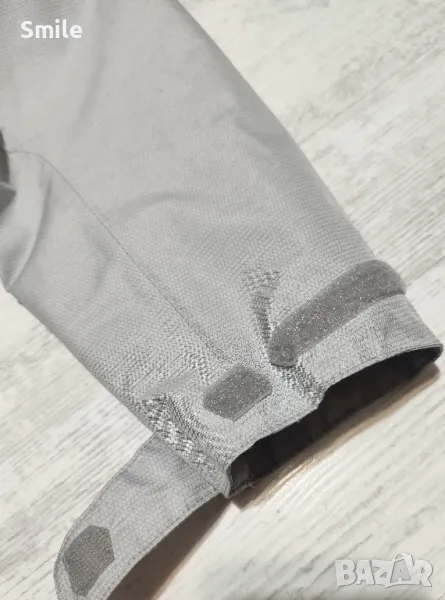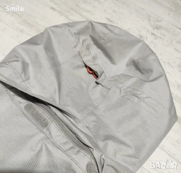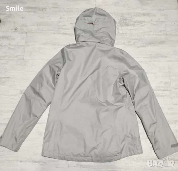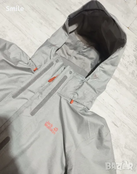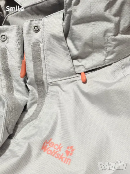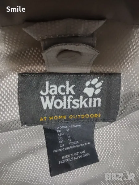 Оригинално дамско яке Jack Wolfskin. Якето е полиестер, отвътре с мрежа. Липсва подплатата. Отлично състояние, като ново. Сваляща се качулка с цип + копчета от двете страни. Маншети на ръкавите с велкро закопчаване Отдолу има връзка за регулиране със стопери. Размер М. Размери измерени от мен: ширина от подмишниците - 53 см., дължина - 68-70 см., дължина ръкав от подмишницата - 52 см., дължина на ръкав + рамо - 77 см.. Изпращам със "Спиди" или "Еконт