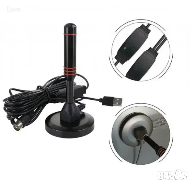 Стайна антена магнит за цифрова и аналогова телевизия, вграден усилвател - Гаранция 12 месеца